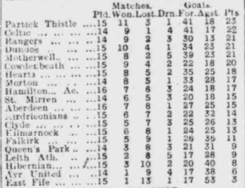 The Thistle Archive Posted February 19 Author Report Share Posted February 19 In response to an excellent question on Pie & Bovril, we looked back at when Thistle were last at the outright summit of Scottish Fitba'. We did, of course, get joint-top as recently as August 2013 with a draw vs. Dundee United as we were the only game on the opening Friday night! Interestingly, we shot to the joint-top on our First Division debut, 4 Sep 1897, courtesy of a 3-2 win versus the Scottish champions, Hearts. There was no separation criteria beyond points in those days. Going by the call of midnight on our matchdays, the deepest point date-wise was 22 November 1947 when a last-minute winner vs. Third Lanark at Hampden (of all places!) did the needful. Game wise, the deepest point occurs on match day 15 on 15 November 1930, after a 2-1 Firhill win over St Mirren (per table below). Jags were last outright top on 9 Aug 1980, another 3-2 win over Hearts on the league season opener. Click any of the links to explore more. 1 Quote Link to comment Share on other sites More sharing options...