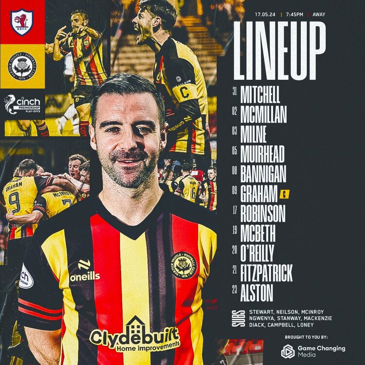 fenski Posted May 13, 2024 Report Share Posted May 13, 2024 Bannigan in for Neilson for me too. I'd start with McBeth and Muirhead at the back, but be ready to bring on O'Reilly and push McBeth in to midfield depending how things are going. Last season we appeared to catch Ayr cold at this stage. Could that happen again? Rovers haven't had recent playoff experience. Quote Link to comment Share on other sites More sharing options...