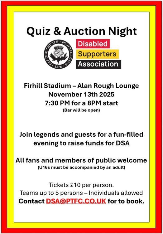 Third Lanark Posted November 4 Report Share Posted November 4 (edited) 23 hours ago, Thistle_1876 said: Dunfermline game postponed and rearranged for Tuesday 25th November, gutter for you Third Lanark, nothing worse, had it last year with Falkirk Yeah its gutting mate. We will need to try for our third hospitality attempt of the season in 2026, im thinking possibly the Arbroath game on 28th February as i don think there are scotland games scheduled for that weekend and it might be a game less likely to be moved for TV than other ones (though i have no idea really), but again will need to see if it suits others in my group. But we are definetly not going to be able to enjoy the hospitality in 2025 as to many things clashing for others in my group in the remaining period of 2025 Edited November 4 by Third Lanark Quote Link to comment Share on other sites More sharing options...