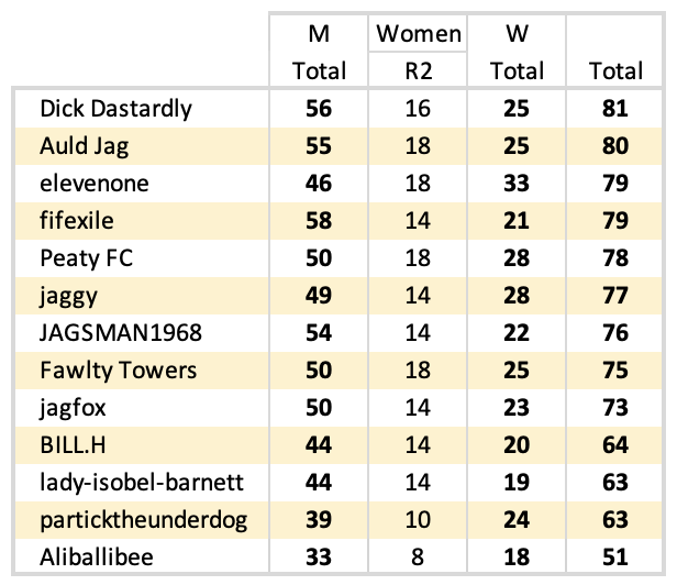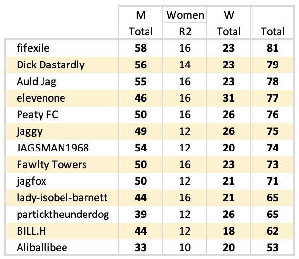 jagfox Posted September 28 Report Share Posted September 28 On 9/26/2025 at 1:59 PM, BowenBoys said: Here we go. We've got enough to field a team. The Crème de la Crème Squad. Next up will be the Women's First Round, next weekend. Get your AHs and HAs in please. Women's First Round fixtures Arbroath Women v Elgin City Bishopton Ladies v Airdrie CC Ladies - H1 Cambusdoon Ladies v Cumbernauld United Ladies Cumbernauld Colts v Huntly FC Women Dunipace Ladies v Thornton Hibs Ladies - A2 Edinburgh Caledonia v Central Ladies - A2 Edinburgh Uni Thistle v Inverurie Loco Works - H1 Glenrothes Strollers v Dunfermline Athletic Grampian Ladies v St Mirren - H1 Harmony Row v Westdyke Ladies - H1 Hutchison Vale v Buckie Ladies - A2 Queen of the South Ladies v Saint Anthony's Ladies - A2 Matches to be played on weekend of 5 October Correct predictions worth 1 point each Deadline 1pm, Friday 3 October HHHH HHHA AAHH Quote Link to comment Share on other sites More sharing options...