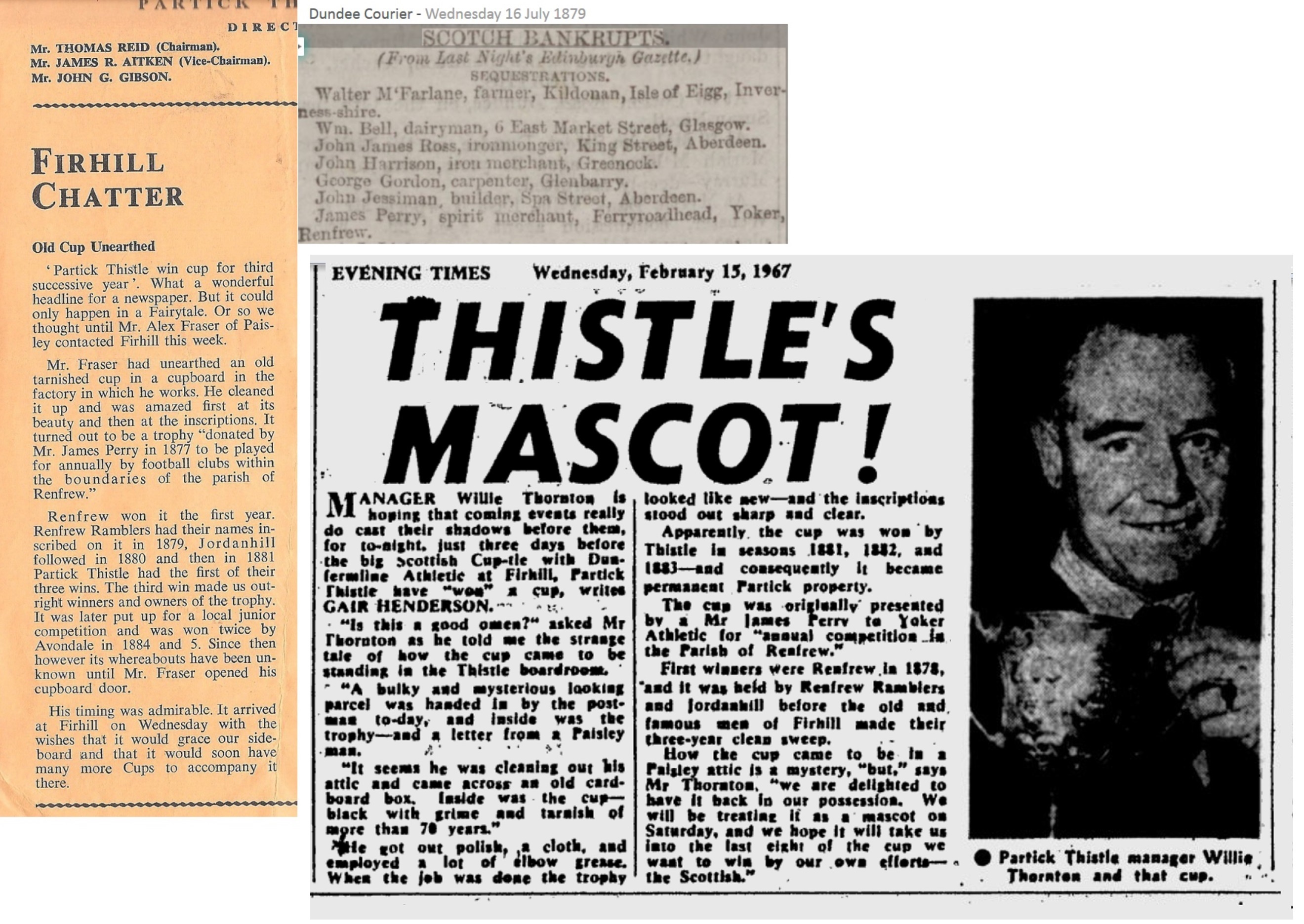 The Thistle Archive Posted March 19 Author Report Share Posted March 19 On this day 1883, Thistle win their fourth trophy. Being their third Yoker Cup in successive seasons, they got to keep it. It was lost through the years, but miraculously turned up again in 1967! Does anyone have a good photo of it from their boardroom visits? Mon-19-Mar-1883 Partick Thistle 2 Sir John Maxwell 0 (Yoker Cup Final) → 1 Quote Link to comment Share on other sites More sharing options...