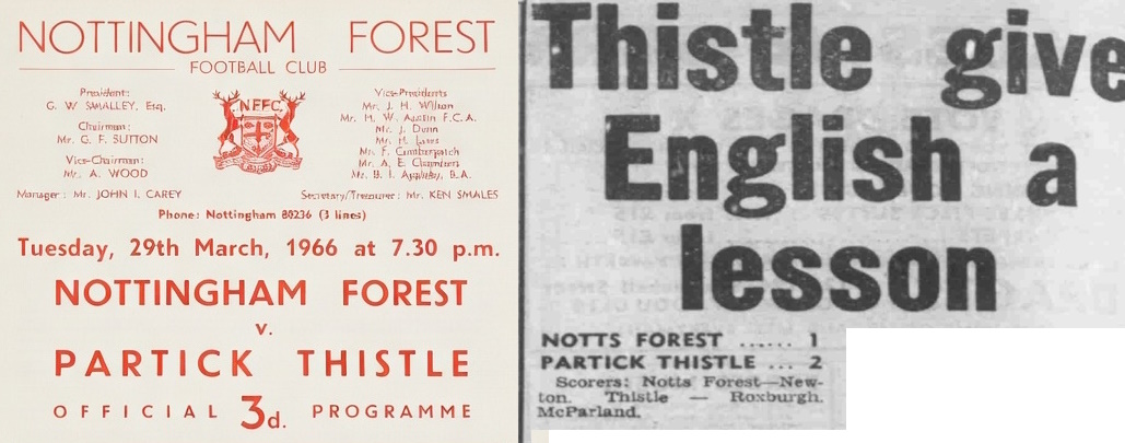 The Thistle Archive Posted March 29 Author Report Share Posted March 29 On this night 1966, but we don't like to go on and on about it... 👀 Tue-29-Mar-1966 Nottingham Forest 1 Partick Thistle 2 (Friendly) → 1 Quote Link to comment Share on other sites More sharing options...